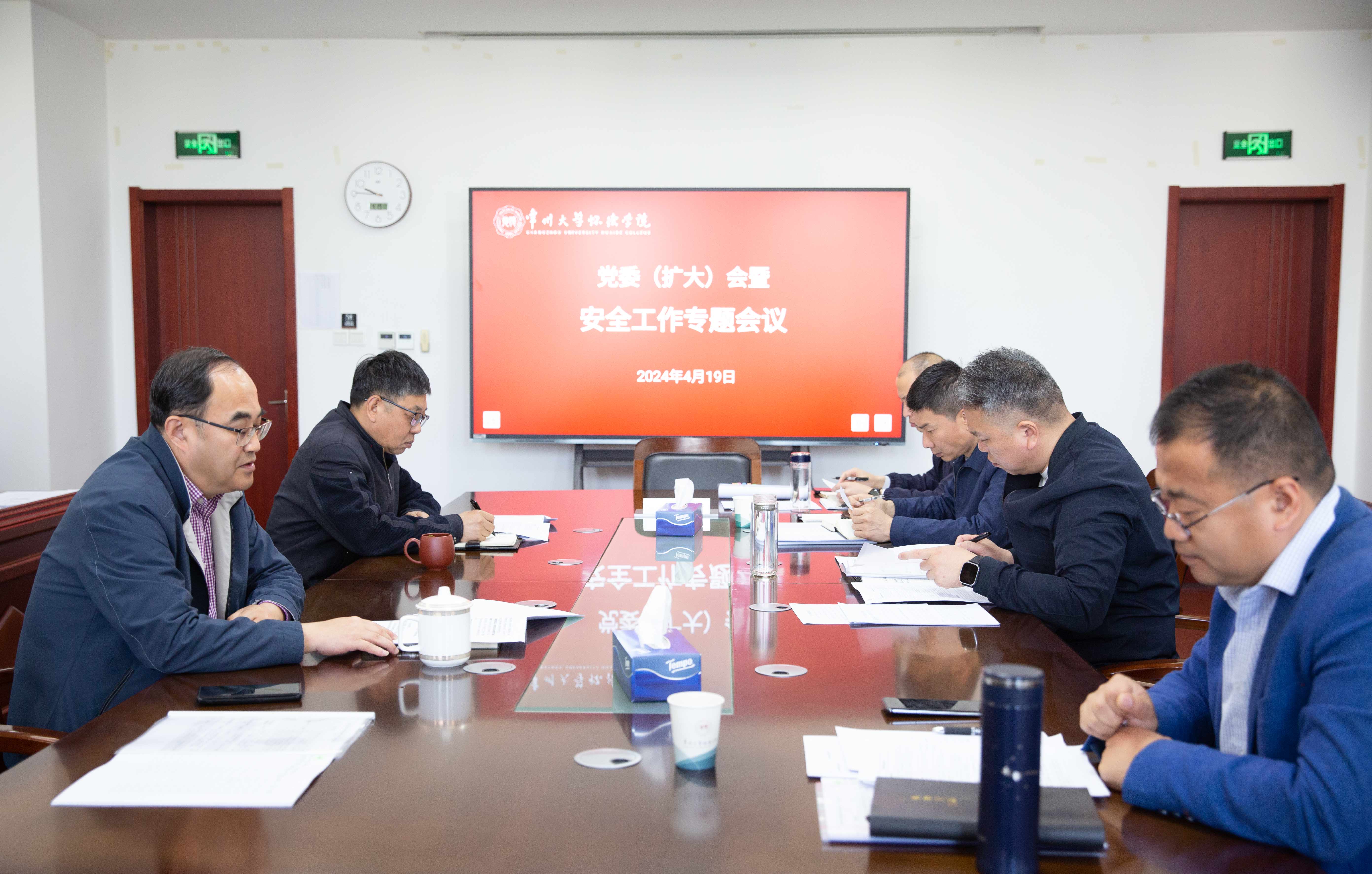 为进一步加强校园安全风险防控和隐患治理,全面推动平安校园建设,4月19日,学院在怀德楼第一会议室召开党委(扩大)会议,专题研究部署校园安全工作。全体院领导出席会议,相关职能部门负责人列席会议。会议由党委书记李伟明主持。