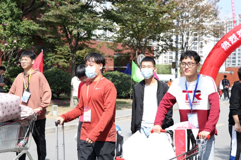 迎新工作如火如荼,志愿者分工明确,各司其职,到处都是他们忙碌的身影。每当看到学弟学妹搬着笨重的行李,志愿者们都会立刻跑去帮忙并带领他们办理入学手续。学生班主任们耐心核对新生报道信息,主动和新生聊天,消除了他们在新环境中的陌生感。迎新工作在欢声笑语中有条不紊的进行着。