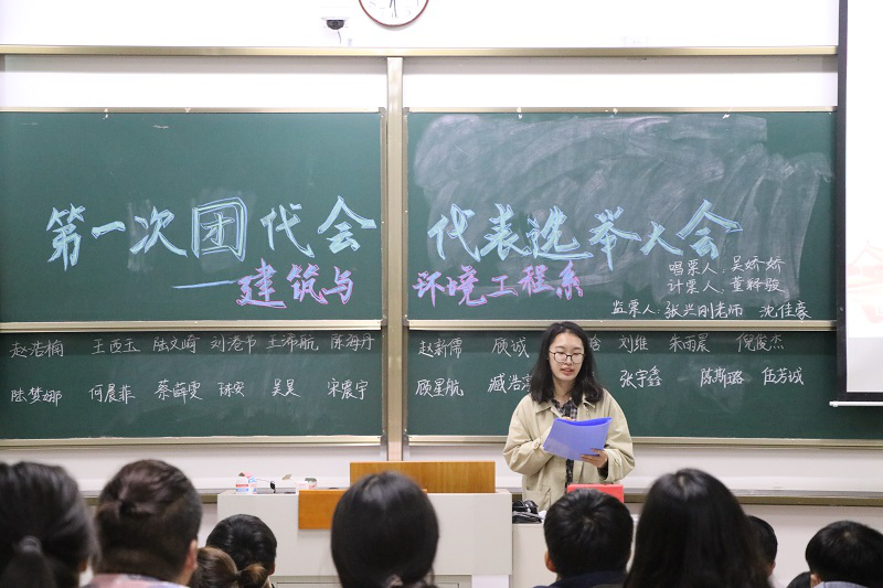 2020年10月16日18:00,建筑与环境工程系于J103教室召开共青团新葡的京集团350vip8888委员会第一次代表选举大会。建筑与环境工程系辅导员张兴刚以及各班学生代表参加大会。大会应到97人,实到86人。会议由系团委副书记何晨菲主持。