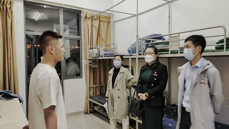 为更好了解艺术系2020级新生入学情况,关心新生宿舍生活情况,10月11日晚,艺术系主任闫秋羽,艺术系党总支副书记金超和2020级新生辅导员孙珊走访了新生宿舍。