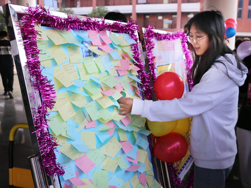 “解忧杂货铺”活动以同学们平时生活中遇到的烦恼为中心,同学们积极地将自己的疑惑书写在便利贴上,并将其粘贴于“解忧”展板,随后会有热心同学,在“解忧”展板上留下自己的答案。场内外同学积极参与其中,现场气氛活跃。