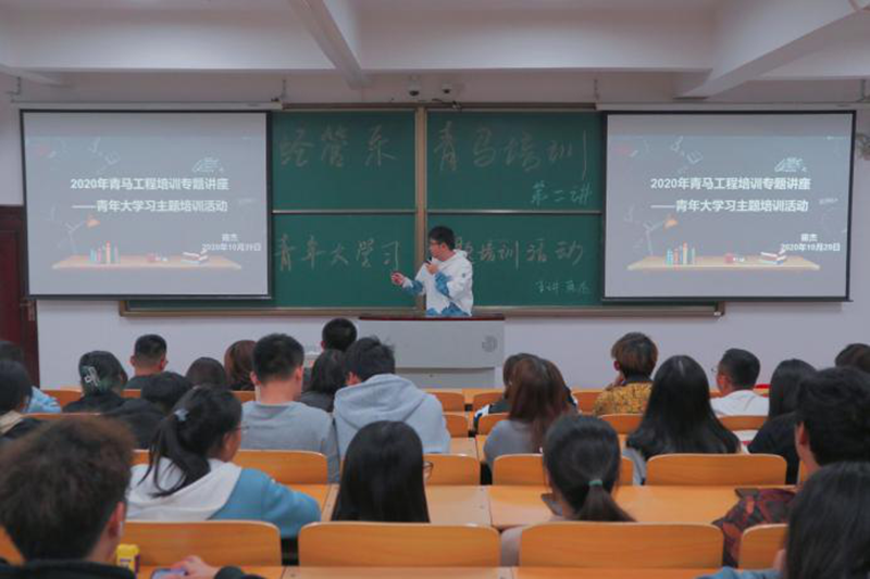 为了提高同学们的思想政治素质,坚定理想信念,10月29日晚,经济管理系于A1阶举办了第三期青马培训班第二讲。本次活动由前任院团总支副书记雍杰主讲,经管系19级、20级各班班委代表参加。