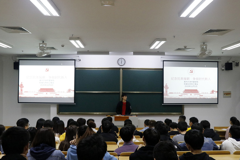 为纪念中国人民志愿军抗美援朝出国作战70周年,11月1日,机械与材料工程系学生党支部在J104展开“纪念抗美援朝,争做时代新人”主题活动,机械与材料工程系学生党支部全体党员、积极分子参与。