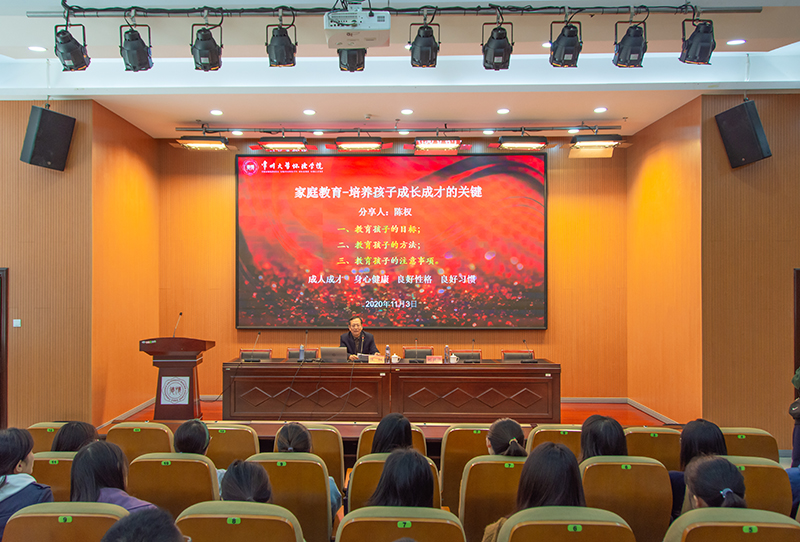 为帮助青年教师更好开展家庭教育,11月3日上午,学院工会联合关工委共同举办“家庭教育——培养孩子成长成才的关键”分享会。分享会由原党委书记陈权老师主讲,近40名青年教师参加。院长助理刘国仕主持分享会。