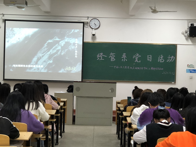 为纪念抗美援朝胜利70周年,弘扬伟大的抗美援朝精神,激励广大学生党员与入党积极分子不忘初心、继续奋斗,11月2日下午,经管系在A109组织开展了“纪念抗美援朝战争胜利70周年”主题党日活动。支部全体学生党员和入党积极分子共同参加。