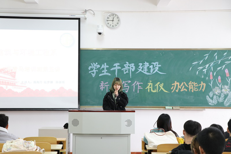 会上,建筑与环境工程系执行主席陆梦娜、陈海丹、陈新瑶分别针对新闻写作、礼仪、办公能力三个方面作讲解。他们详细地讲述了如何在学生工作中运用好相关的技能知识。同时,他们表示希望各位骨干们对这些知识要有一定的掌握并能有效地运用到学习生活中。