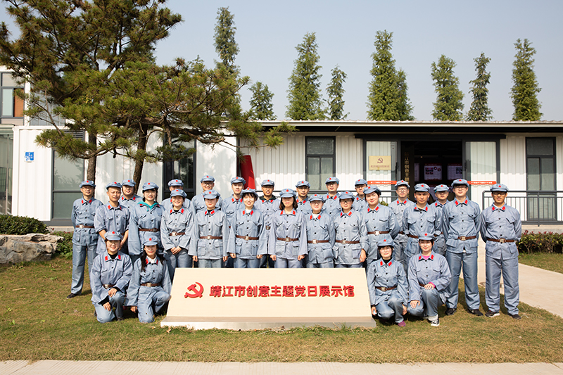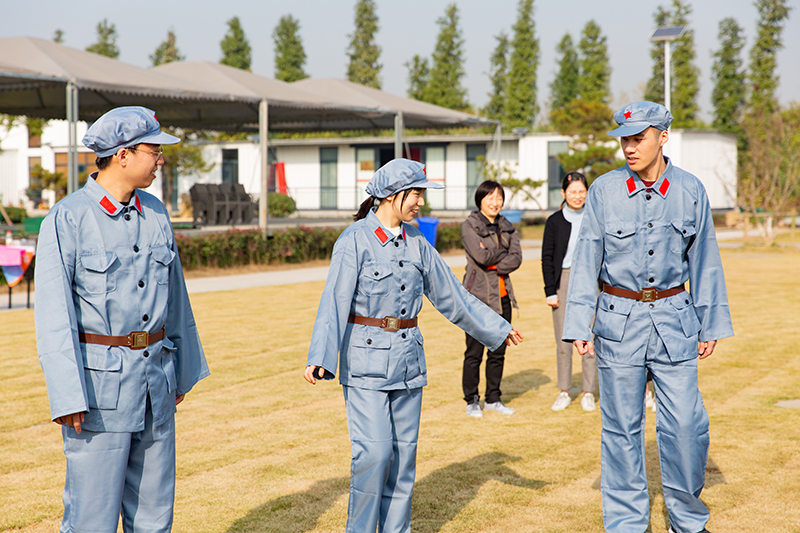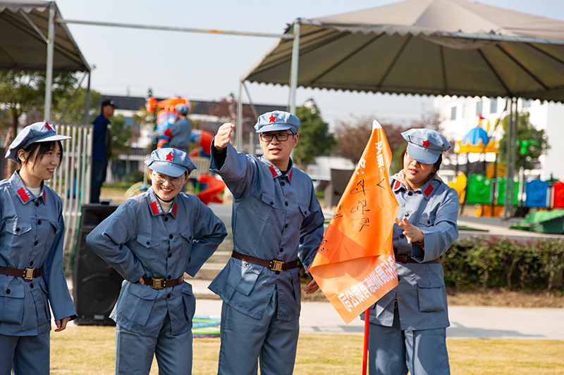 本次素质拓展活动采取体验式学习方式,以团队为活动主体。在拓展教练的指挥下,来自不同部门的新教职工们迅速组建成3支拓展队伍,各队伍自创队名、队训,共同体验“急速60秒”、“盲人摸象”、“走草地和渡江河”等项目。活动过程中,各个团队齐心协力,相互鼓励,迎难而上,迅速建立起信任关系,体验到了相互沟通、分工与执行的重要性,锻炼了组织协调能力和团队协作能力。最后,大家在解说员的带领下观了靖江市创意主题党日展示馆,感受红色文化活动的魅力。