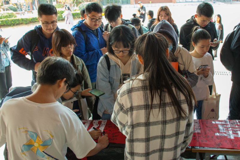 学风建设是大学校园建设的重点方面,也是一个学校的重要形象代表。在活动现场,同学们纷纷在宣传横幅上签下自己的名字,用自己的行动表示对学风建设活动的支持,宣示自己郑重立志、努力逐志的决心。虽名字不同,字迹不同,但大家的决心相同。