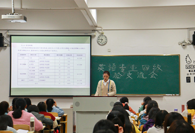 分享会主要包含试卷分析、经验方法和提问交流等内容。主讲人仔细分析了写作、听力、阅读理解及翻译等题型,提出了相应的解答技巧,强调了考前准备的重要性,鼓励同学们放平心态,清晰审题,冷静思考。会后,同学们就备考过程中遇到的问题现场进行了交流互动,分享会在掌声中圆满结束。期待同学们在即将到来的英语四六级考试中取得好成绩。(通讯员/刘婧娴)