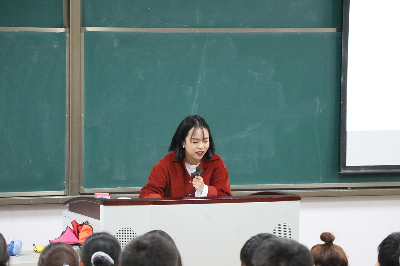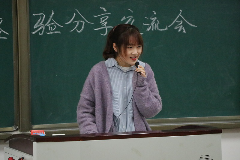 会上,薛瑜路首先播放了听力视频,总结了四级考试中做听力的技巧,随后强调了词汇积累的重要性,并分享关于作文的写作技巧;钟雪洁在发言中介绍四六级的题型与分值的分布,然后对同学们在词汇方面,提供自己的方法进行指导,整个分享会氛围十分融洽。
