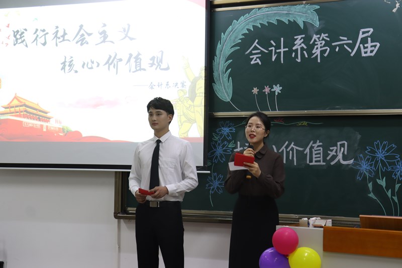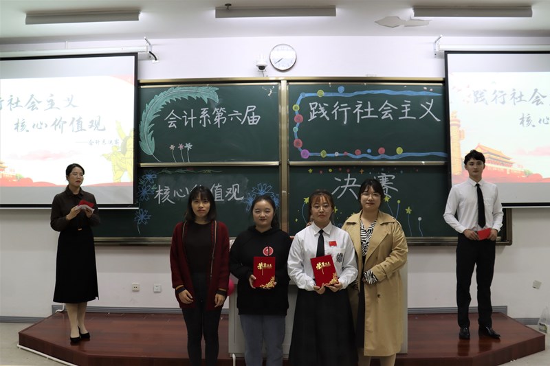 为践行社会主义核心价值观,11月17日,会计系成功举办第六届“践行社会主义核心价值观”大赛决赛。本次比赛由会计系辅导员谢巧娟老师、王蕾老师、会计系团总支副书记副书记张婧、会计系学生会执行主席张思凡、会计系青协会长李清文担任评委,六支队伍参赛。