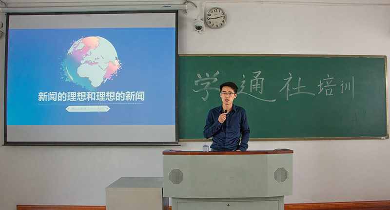 为提升新葡的京官网新媒体工作队伍的理论水平和业务能力,11月15日,新葡的京官网大学生通讯社联合靖江电视台举办“新媒体培训会”,本次培训会由靖江电视台陆林老师主讲,大学生通讯社主席金致炎主持。