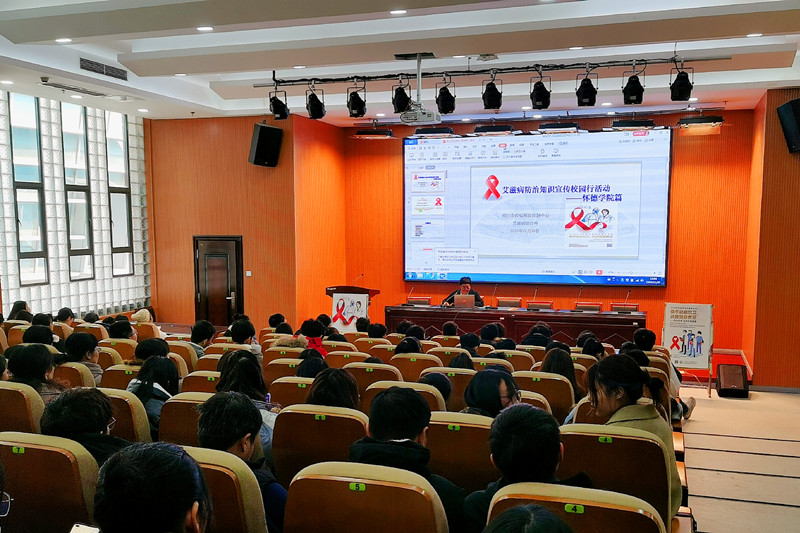 活动现场通过设置健康咨询台、发放防艾宣传资料、展出防艾知识展板等方式进行宣传教育。同学们积极参与,表达了对防艾工作的支持。随后,疾控中心的专家为同学们做了预防艾滋病的专题讲座,通过图片、文字详细介绍了艾滋病的发病机理、临床表现以其传播途径,并重点讲解了预防措施,倡导学生珍爱青春,健康生活。