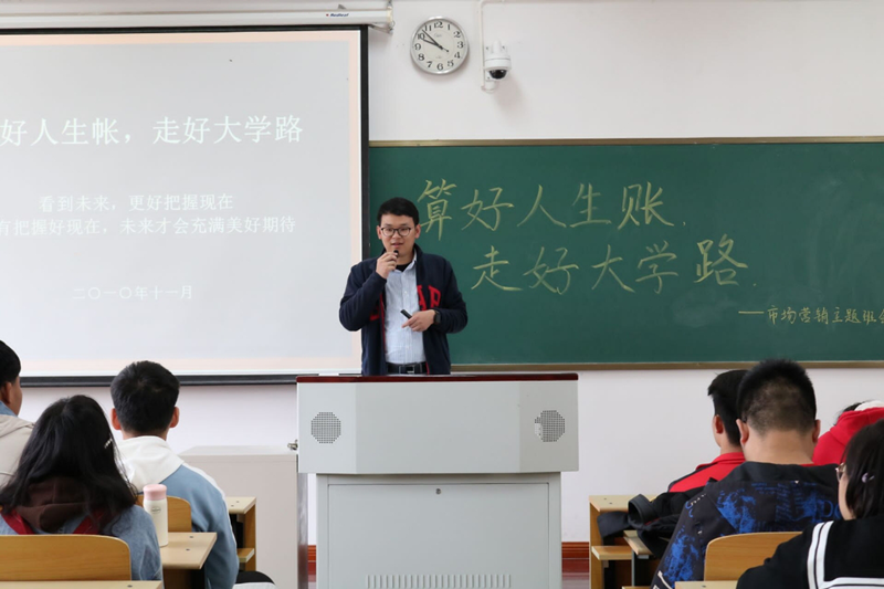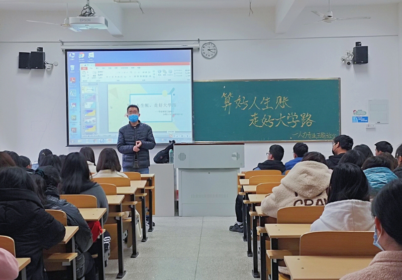 为了提高同学们的学业规划能力,明确人生目标,引导同学们量身定做未来规划,11月下旬,经管系开展了以“算好人生账,走好大学路”为主题的班会活动,由经管系各班班主任主讲,18-20级全体学生参加。