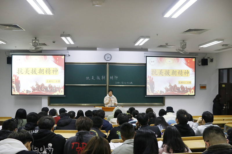 王艳从抗美援朝的时代背景、战争过程、英雄人物和时代价值开始,接着向同学们宣讲习近平总书记在纪念中国人民志愿军抗美援朝出国作战70周年大会的重要讲话精神。最后,活动在观看纪录片《为了和平》后结束。