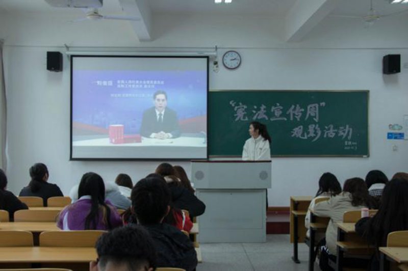 为提升大学生的法治意识,树立正确的法治观,12月3日下午,经济管理系于A209开展“宪法宣传周”观影活动,由营销202班长罗紫珊主讲,营销202班全体成员参加。