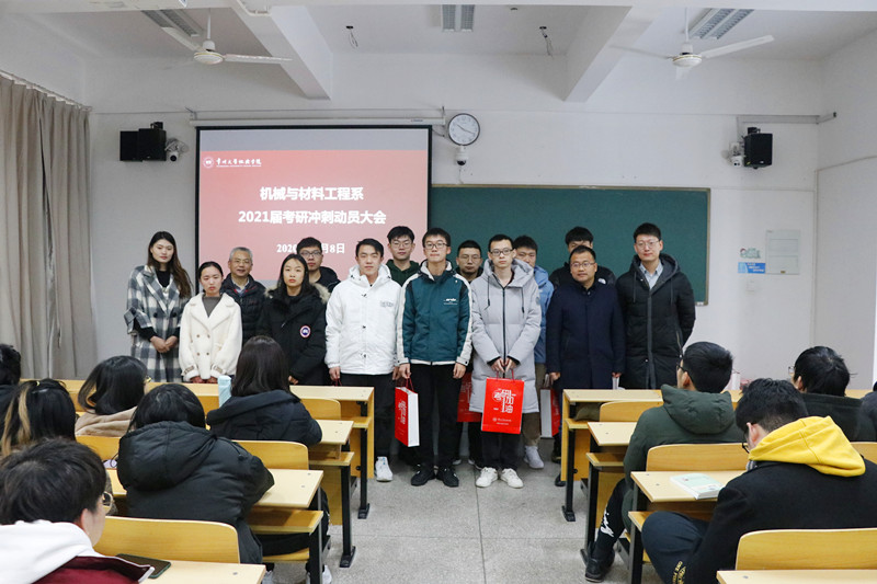 为鼓励2021届考研学生,在最后的冲刺阶段坚定考研信念。12月8日,机械与材料工程系于A109举行2021届考研冲刺动员大会。机械与材料工程系主任、党总支书记张锁龙主持,院长助理马庆功、机械与材料工程系党总支副书记朱骥洪携毕业生辅导员出席,大四全体考研学子参加。
