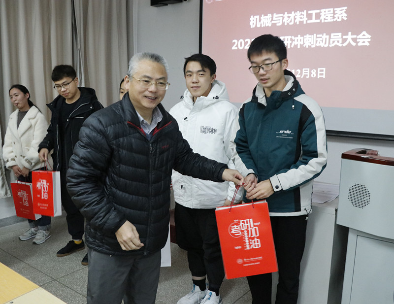 会后,张锁龙、马庆功代表系部为考研学子发放了慰问品。(通讯员/陈晨)