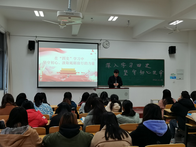 为扎实推进“四史”学习教育,经管系学生党支部于12月3日下午在A108组织开展“深入学习四史,坚守初心使命”主题党课活动。本次党课由经管系党总支副书记唐杰老师主讲,支部全体学生党员参加。