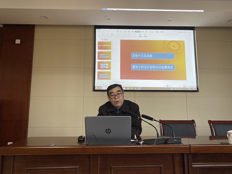 朱忠孝以“承前启后,开展建设现代化国家新征程”为主题,从二〇三五年远景目标和“十四五”时期我国发展的指导方针、主要目标、重点任务,构建新发展格局的战略构想和重要着力点,坚持党的全面领导,动员各方面力量为实现“十四五”规划和二〇三五年远景目标而团结奋斗四个方面对党的十九届五中全会精神进行了全面系统深入阐释。