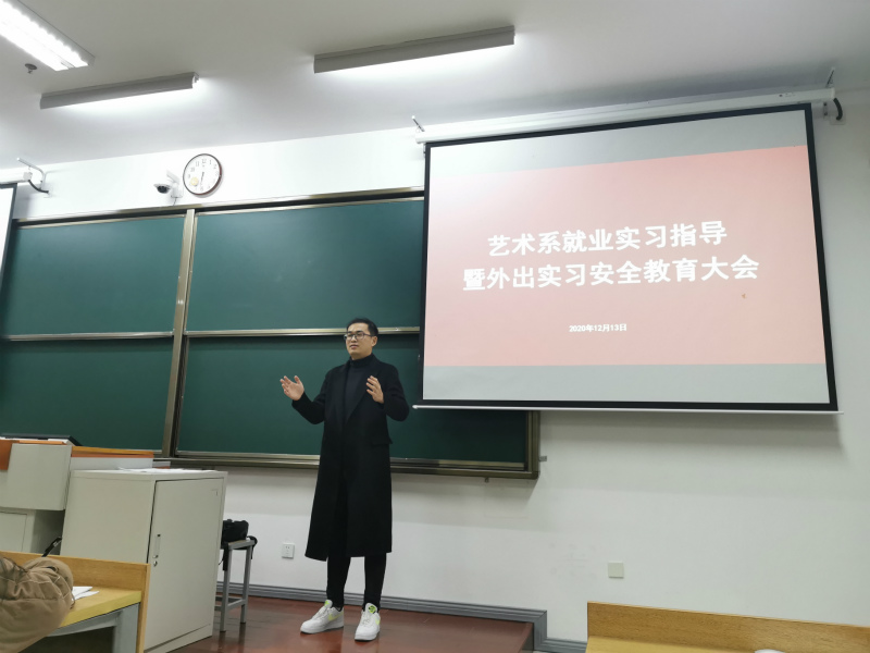 12月13日晚6点,艺术系于J101教室召开就业实习指导暨外出实习安全教育大会。大会由艺术系大四辅导员周彬主讲,艺术系全体大四学生参加。