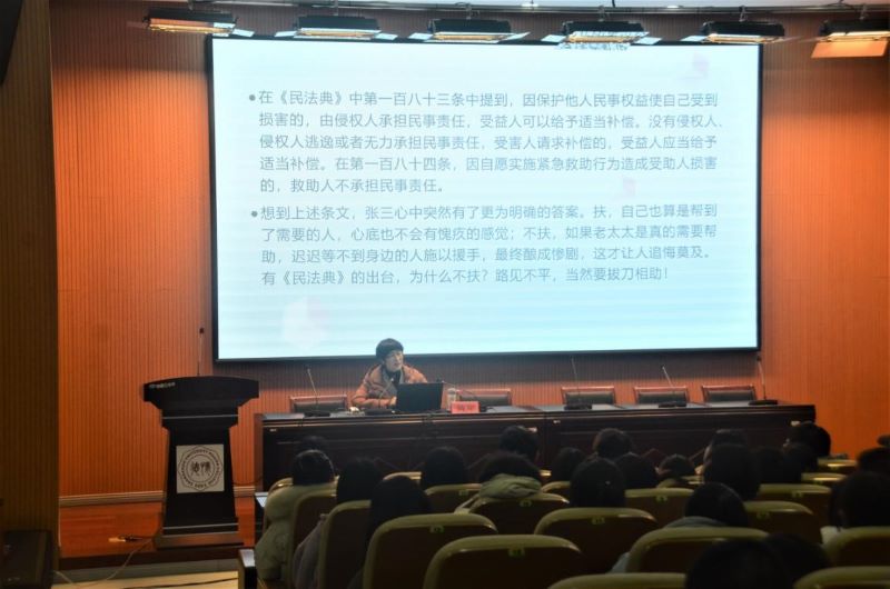 江苏江豪海信律师事务所的黄星律师给学员们带来民法典宣讲。本次讲座对十三届全国人大三次会议表决通过的《中华人民共和国民法典》作出介绍。指出它的出台对于建设中国特色社会主义法治体系、推进全面依法治国具有的重大意义。