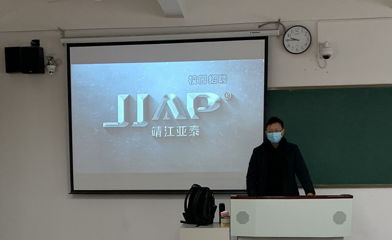 宣讲会由亚泰特种设备有限公司技术总监沈经理主讲,沈经理从公司的发展历程、企业文化与品牌影响力以及企业的特色产品为同学们作了详细介绍。随后参会同学就个人的基本情况、社会经历与对未来的规划方面做了自我介绍,递交准备好的简历并领取了纪念品。
