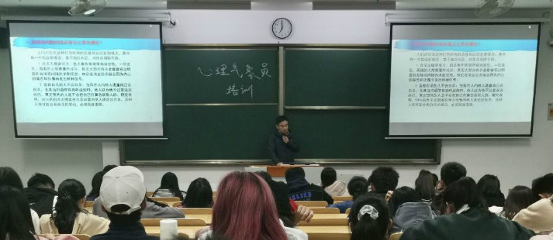 10月27日晚,心理气象员开班典礼顺利举行。本次系列培训主要包含“如何做好心理气象员”,“朋辈互助辅导知识和技巧”,“心理危机干预技巧”,“校园心理情景剧的相关内容与剧本创作”以及“心灵捕手影片观摩学习”五大主题。培训中,马文喆老师和孙建超老师分别结合实际案例,对大学生的常见心理问题进行了深入讲解,剖析了作为一名心理气象员所需要的基本素质以及在心理辅导工作中的关键点。12月8日晚,心理气象员培训总结大会在A101顺利开展。