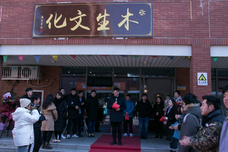 开业仪式首先由朱骥洪进行致辞,他表示,学院对木生文化体验馆十分关爱和支持,并对其发展寄予殷切期望,接着骥江创客街区木生文化项目负责人杨洪进行答词,他对本次开业仪式的所有参与人员表达了感谢,并提到本次开业仪式的准备过程离不开指导老师赵建飞的辛苦付出和大力支持。最后,工作人员组织大家有序参观非遗传承体验馆并进行了砸金蛋互动抽奖游戏。