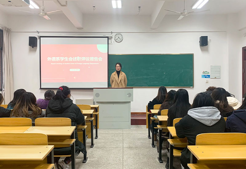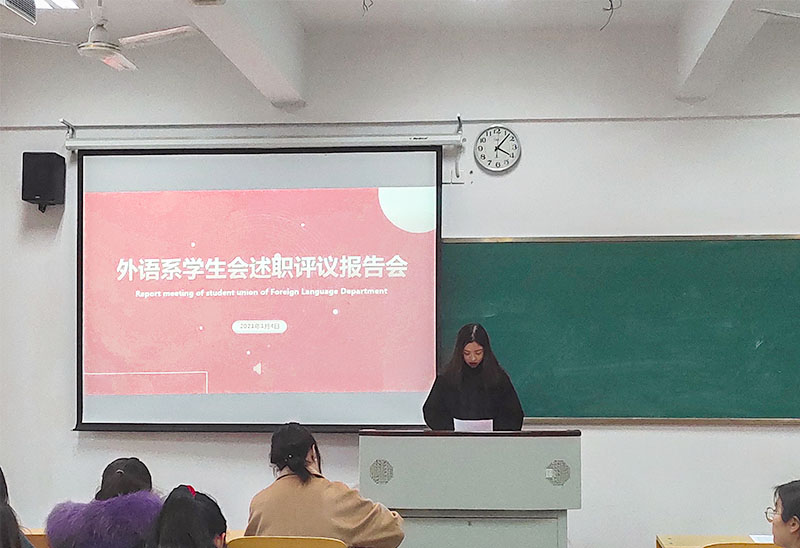 为进一步总结工作,提升学生骨干责任奉献的意识,1月4日下午,外语系于A108举办学生会骨干述职评议会。会议由外语系团总支学生会执行主席刘千千主持,外语系团总支书记刘婧娴出席。