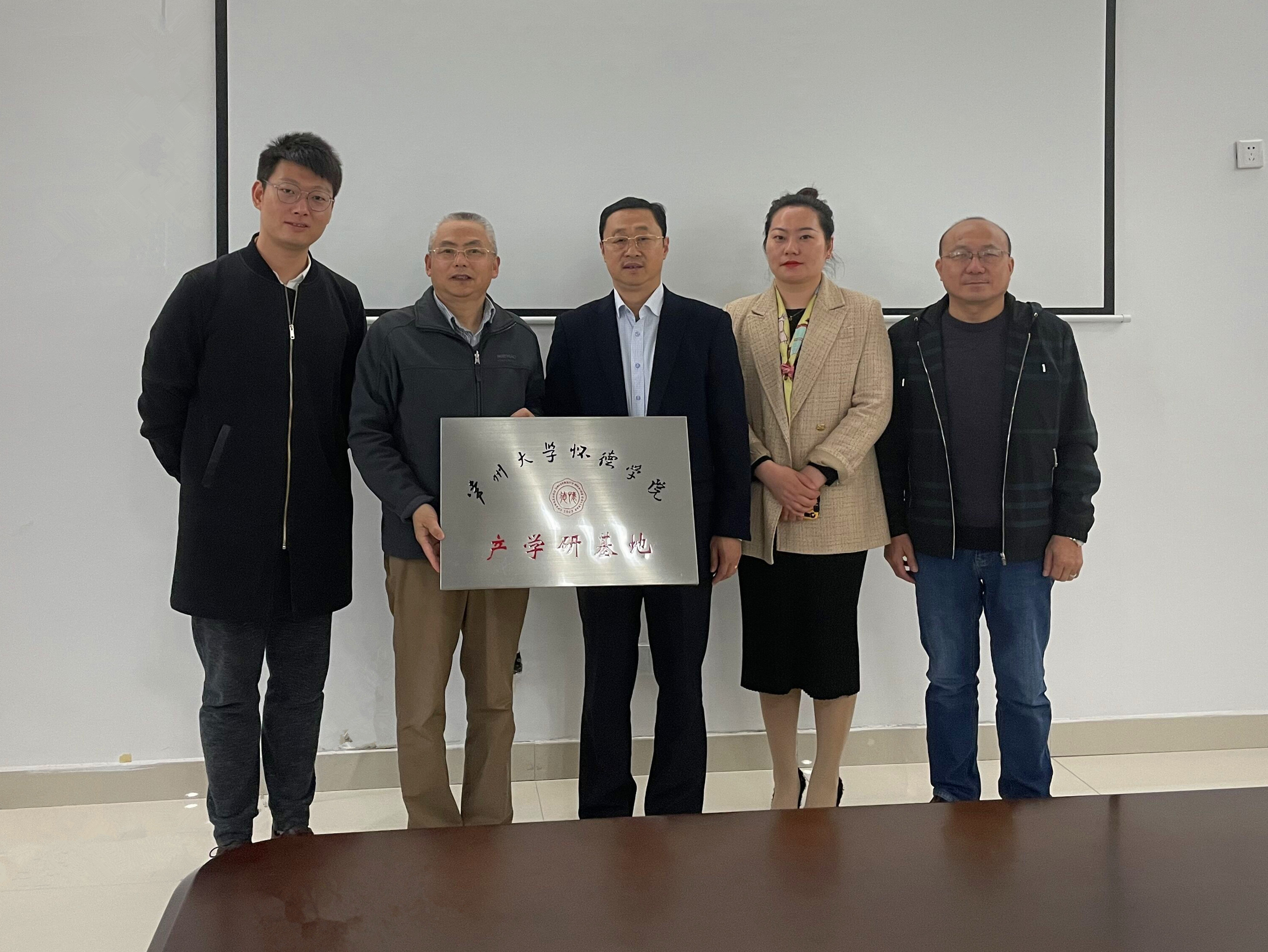系主任张锁龙代表学院与江苏五晟科技股份有限公司代表举行了挂牌仪式。(通讯员/陈晨)
