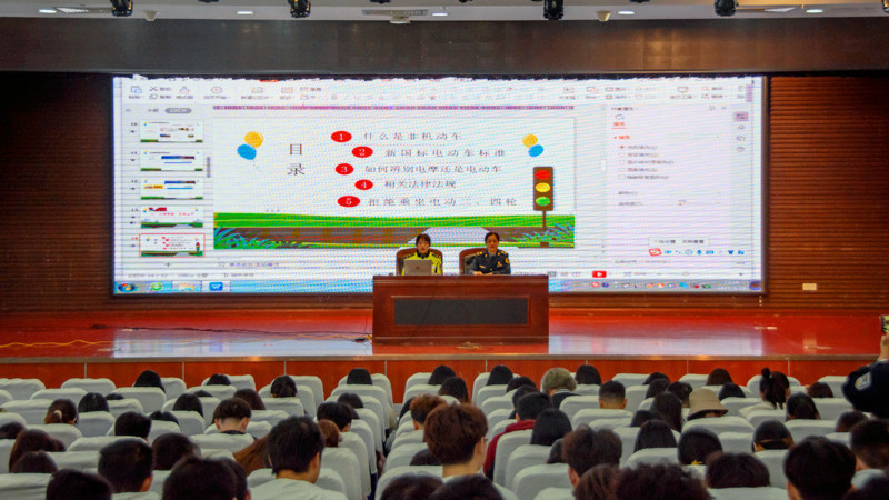 为进一步增强学生交通安全意识,强化自我防护能力,4月28日上午,新葡的京官网邀请靖江市交通运输综合行政执法大队、交通警察大队斜桥中队联合开展交通安全知识讲座,学院近五百名学生参加。
