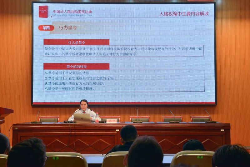 吴丹以学习党的十九大精神为切口,带领同学们深入解读《中华人民共和国民法典》中的人格权编。讲座中 , 吴丹通过简单事例向大家阐述人格权编中的九大内容和特点,同时指出人格权独立成编是对人的主体性的重视,符合党的十九大精神,是新时代人格权发展的内在要求。在互动环节,吴丹呼吁青年学生要加强对个人信息和隐私的保护,并对学生代表的提问进行了专业性解答,使同学们对《中华人民共和国民法典》人格权编内容有了全新的认识。