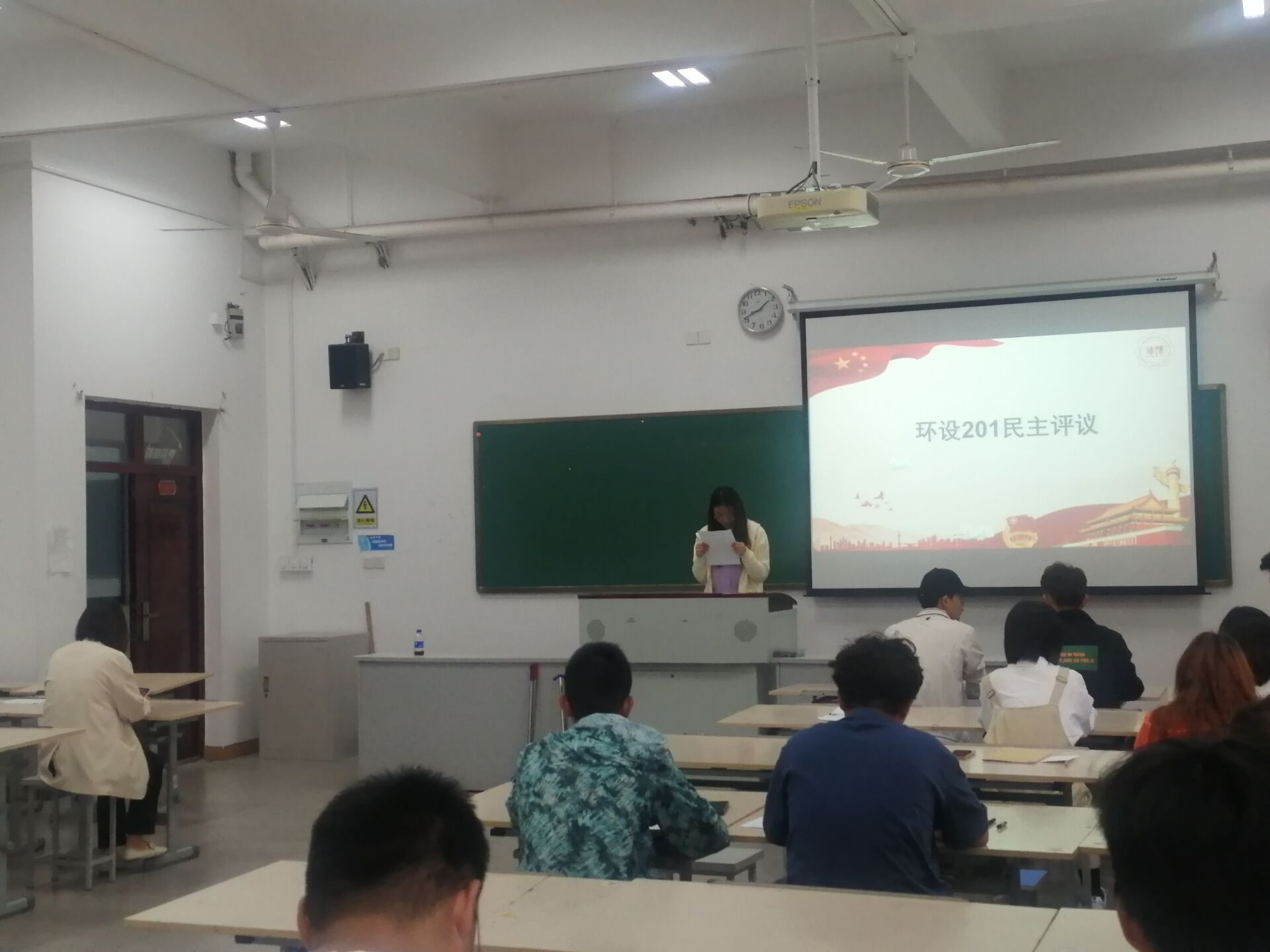 会上,团支部书记宣读本次会议的有关要求及测评标准。随后,团支部同学依次上台发表团员自评,从多方进行自我面总结,体现出同学们爱团、爱党、爱国的主观思想认识。最后,本着公平公正公开的原则,以无记名投票的方式进行,现场唱票计票,根据投票结果推选出支部优秀团员。