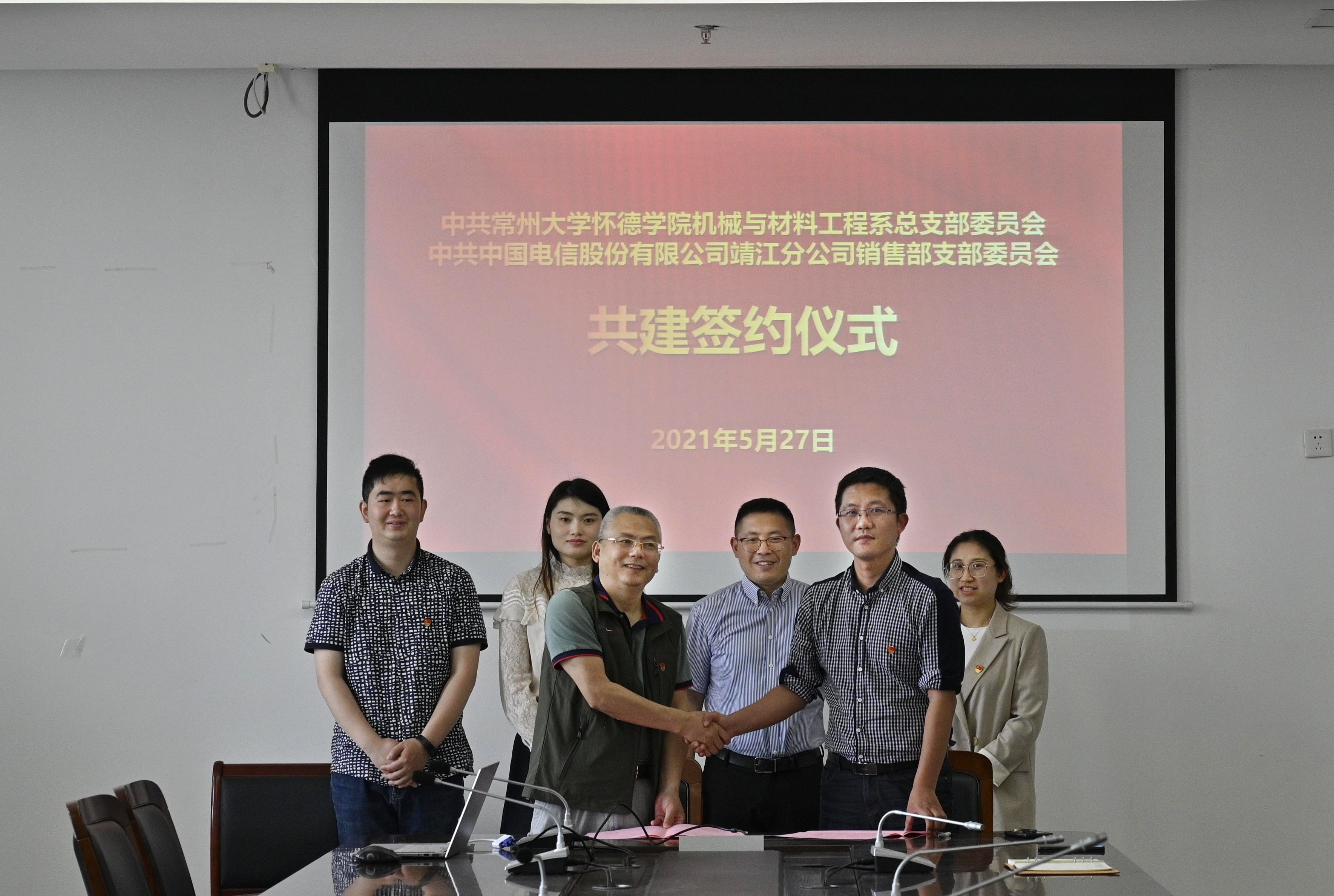 为深入贯彻党的十九大精神,以国家战略需求为牵引,引导广大党员积极培育和践行社会主义核心价值观,推进党建工作与业务工作深度融合,献礼建党100周年。5月27日上午,机械与材料工程系党总支书记张锁龙、副书记谷灵莉与中国电信靖江分公司党委委员周杰、销售部党支部支部书记张杰开展支部结对共建项目。
