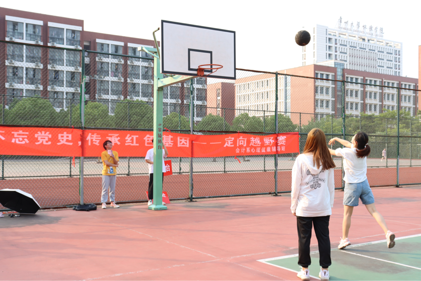 活动中,参赛队伍需要打卡投篮进框,颠簸击球,滚铁环,接力跳绳四个项目,以全程时间作为评分标准。比赛环节紧张激烈,队员们的配合格外默契,每支队伍都抱着青春不服输的劲头,延续了革命先辈们不畏艰险,勇往直前的精神。
