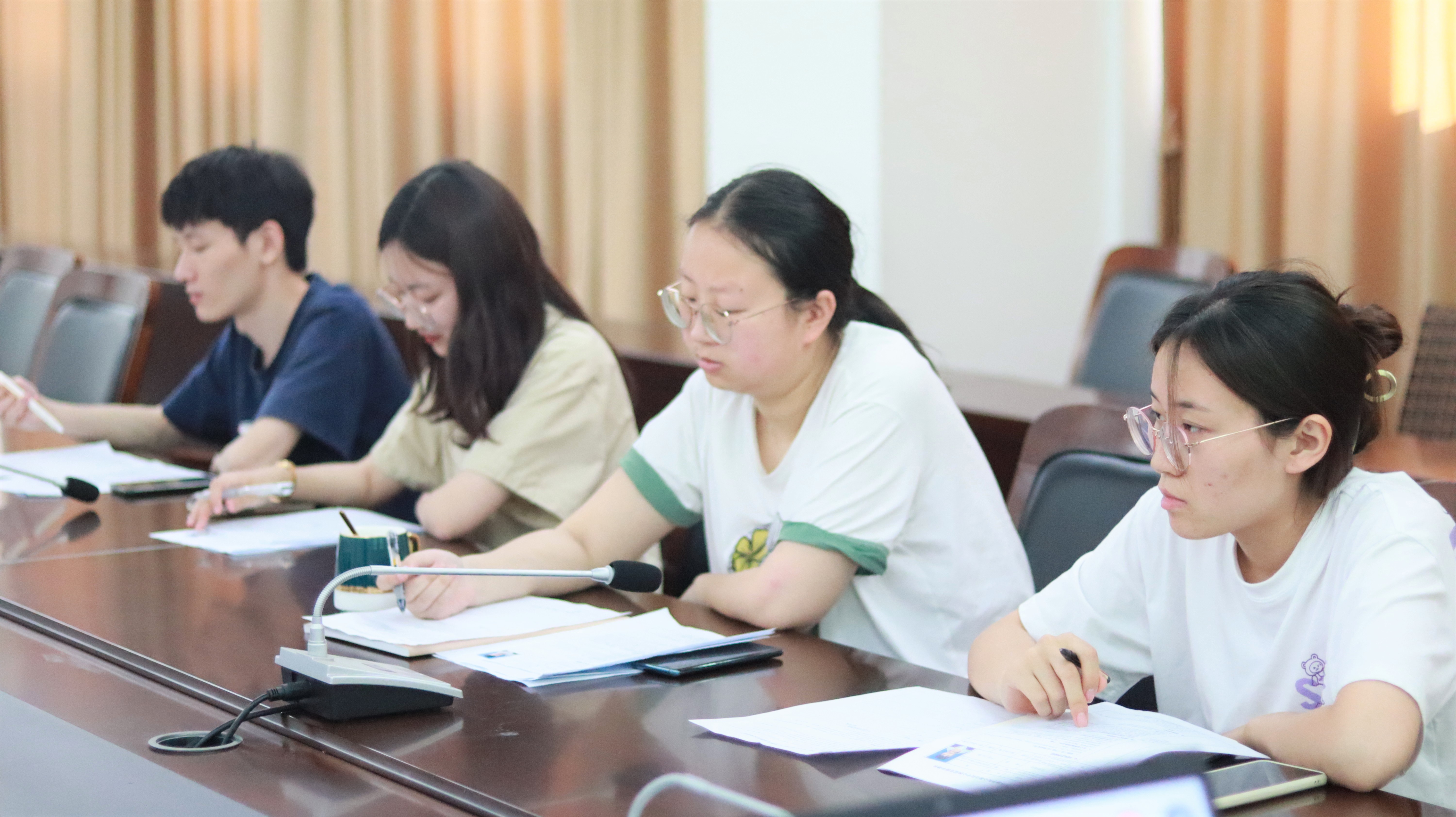 6月7日—6月9日,院心理自助中心换届选聘面试活动在怀德楼第三会议室顺利进行。经过激烈角逐,共聘用新干部20名。6月15日下午,院心理自助中心换届交接大会于怀德楼八楼第三会议室举行,院心理自助中心指导老师马文喆及全体新老干部参加了此次会议。会上,马文喆对新干部的加入表示欢迎,新任干部依次进行自我介绍,新任主席团成员与部长代表在会上进行了发言。会后,新旧部长团对工作进行了交接。