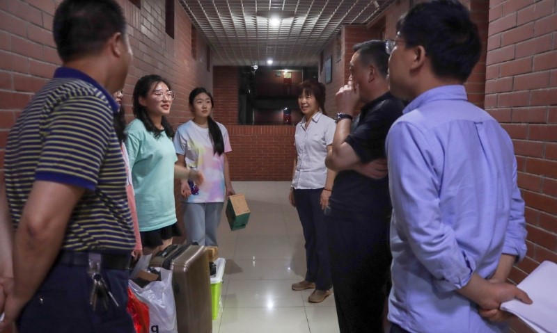 为切实做好毕业生离校工作,深入了解毕业生的生活、心理和就业状况,6月21日晚,经管系党总支书记卓岩,系主任殷博益,党总支副书记唐杰,辅导员任潇茜走访了经管系毕业生宿舍。