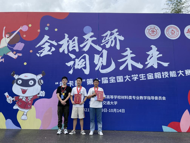 10月14日,第十届全国大学生金相技能大赛在上海交通大学落下帷幕,机械与材料工程系3名选手代表新葡的京集团350vip8888参加比赛,最终骆昕宇、耿选阔2名选手获得国赛三等奖。