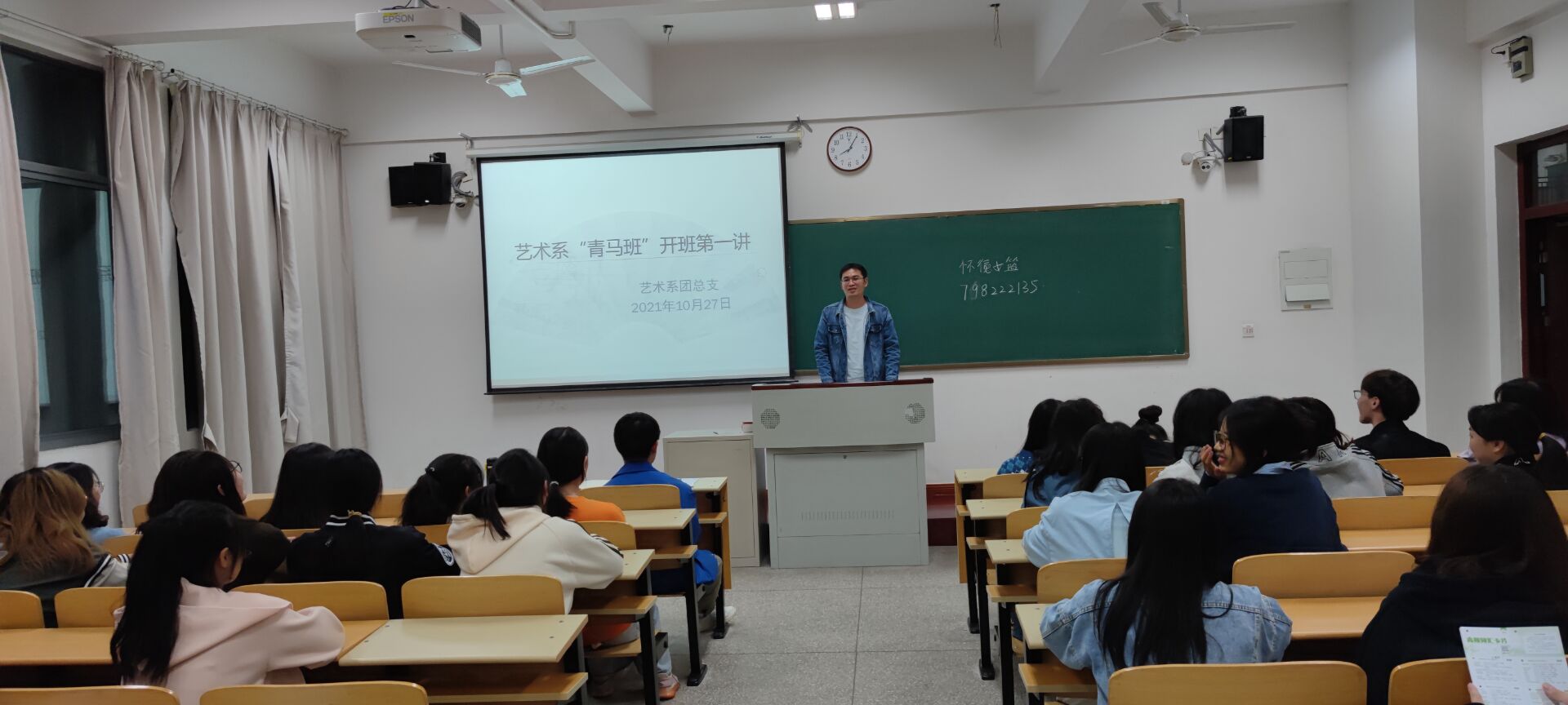 为进一步加强团员青年干部的教育培养力度,提高各学生的实践创新能力。我系于10月27日在A404召开青马开班仪式暨第一讲《新时代共青团员的使命和责任》。本次活动由艺术系周彬老师主持并主讲,艺术系“青马班”的代表参加。