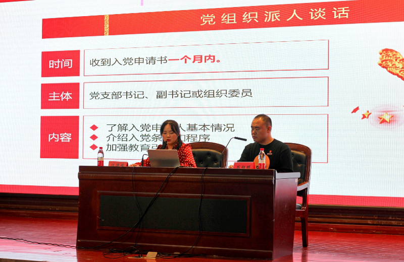 会上,任潇茜从中国共产党的发展历程谈起,系统地讲解了党的性质、宗旨、指导思想等。同时,任潇茜还特别强调了大学生入党时应注意的问题,详细介绍了入党的基本条件和审核程序,并提醒学生们要端正入党动机,在日常学习和生活中,积极向上、努力进取,积极向党组织靠拢。