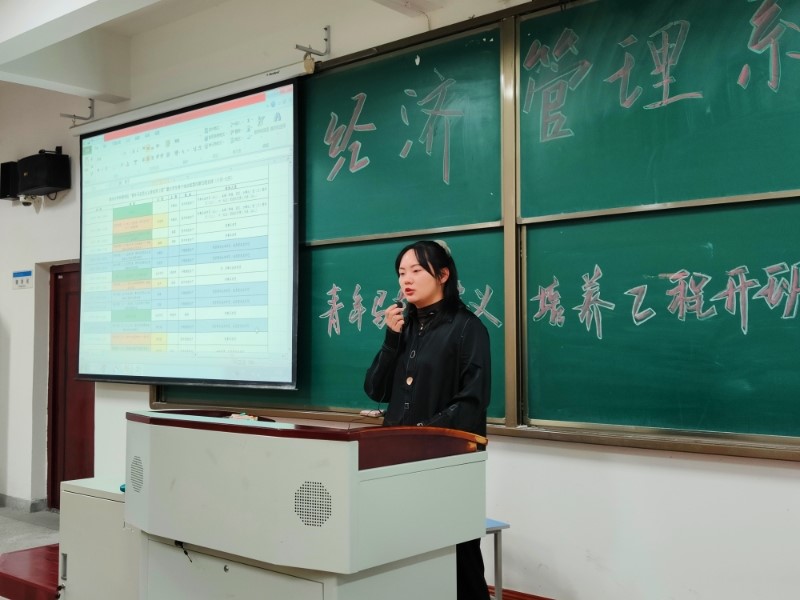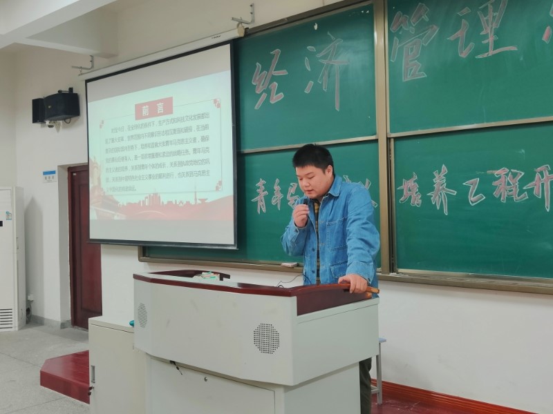为提高同学们的政治素质和思想境界,10月28日晚,经济管理系于A1阶举办了青马培训班开班仪式暨青马第一讲。本次会议由经管系党总支副书记唐杰,团总支书记任潇茜,辅导员石绍明,人力192郭子睿主讲,经管系21级各班班长、团支书和各学生组织骨干参加。