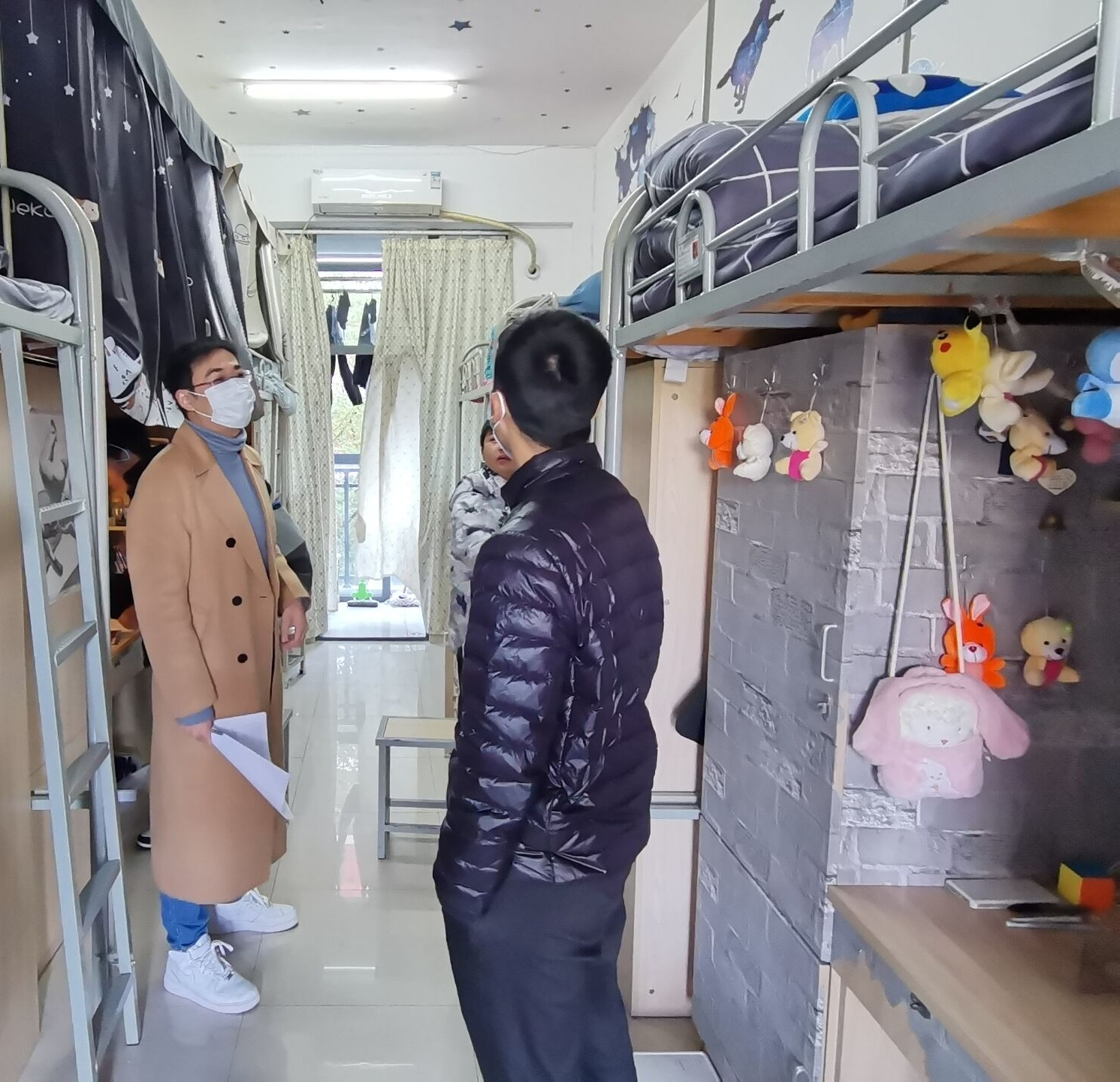 为深入了解艺术系2021级新生入学情况,了解新生对于大学生活以及学习环境的适应情况,11月11日下午,艺术系党总支副书记金超和2021级新生辅导员周彬走访了新生宿舍。