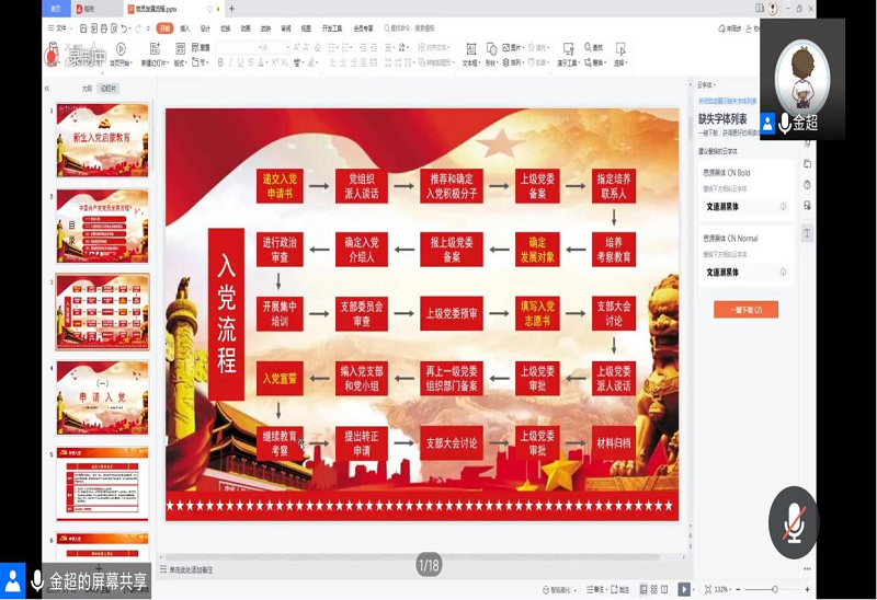 为提高新生对党的认识,端正入党动机,了解党员发展流程,11月14日晚,外语系组织召开了入党启蒙教育讲座,本次讲座由艺术系党委副书记金超老师主讲,外语系2021级全体学生参与。讲座采用线上方式进行。