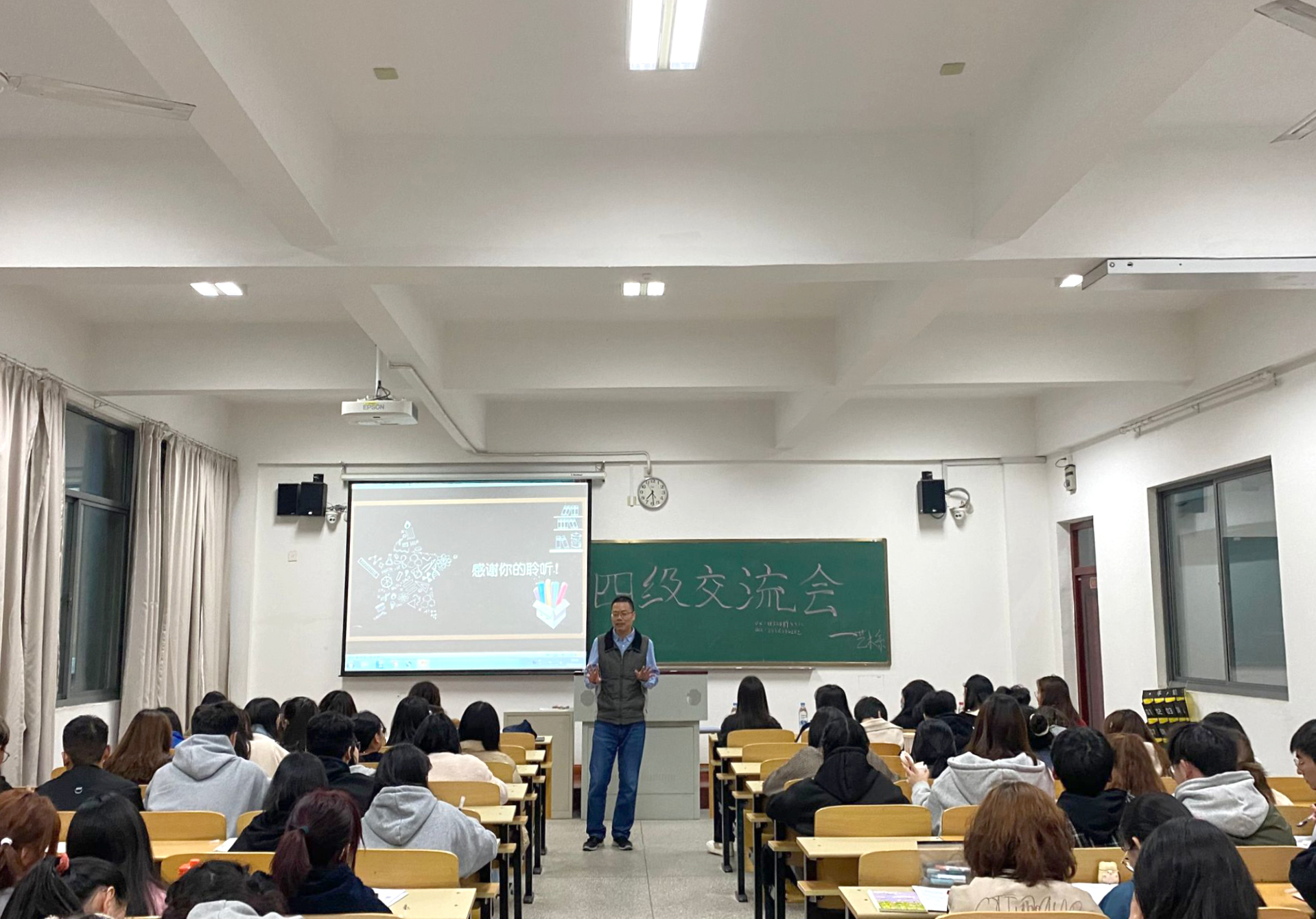 为进一步提高艺术系同学的英语四级通过率,提升艺术系学生战胜英语四级的决心,11月18日晚,艺术系在A401教室举办“21级英语四级经验交流会”。本次活动由资深英语教师冯文杰老师组织并主持,艺术系全体大一新生参与。