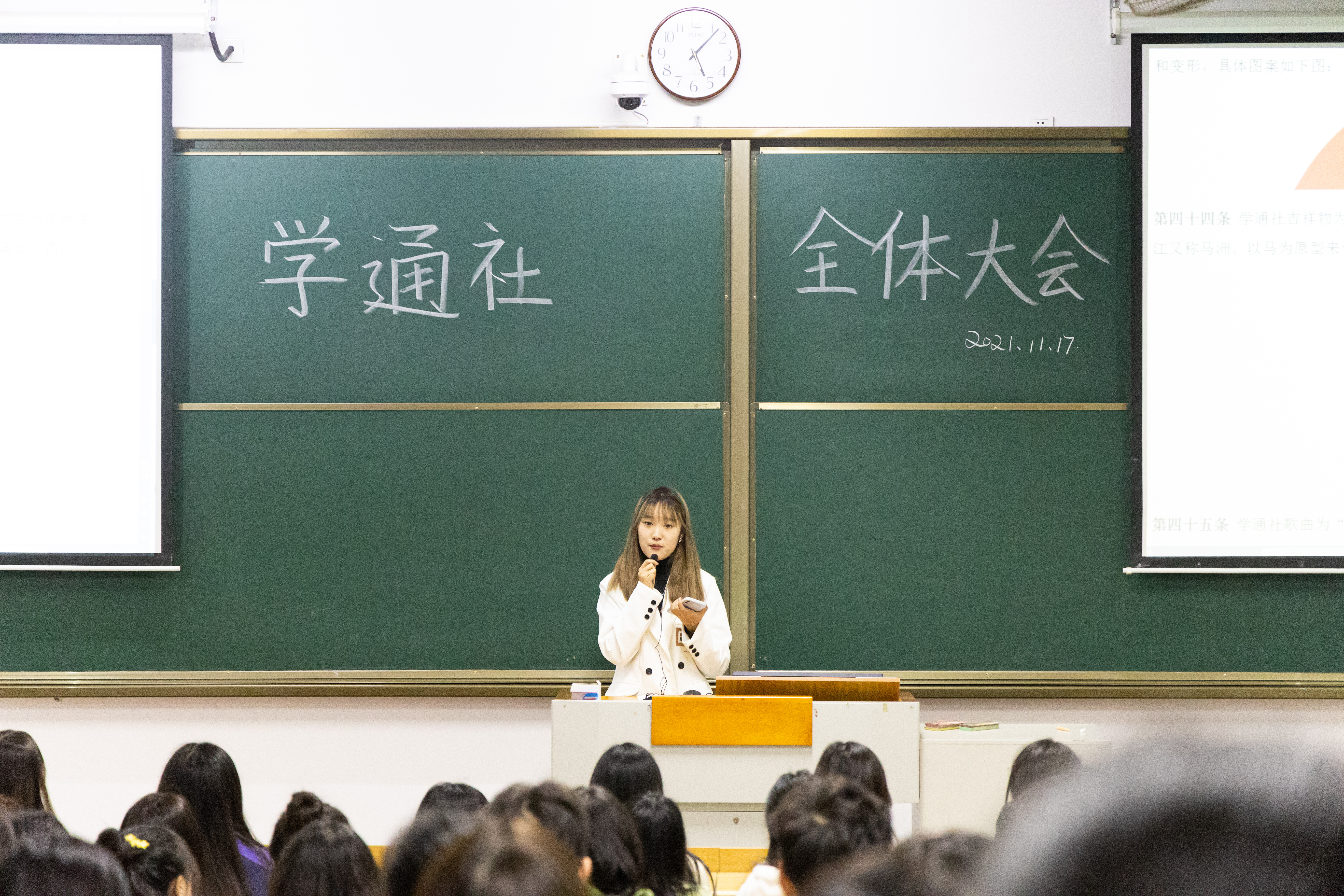 本次会议共有三项流程:学通社主席团成员发言、学习学通社章程和学通社指导老师讲话。