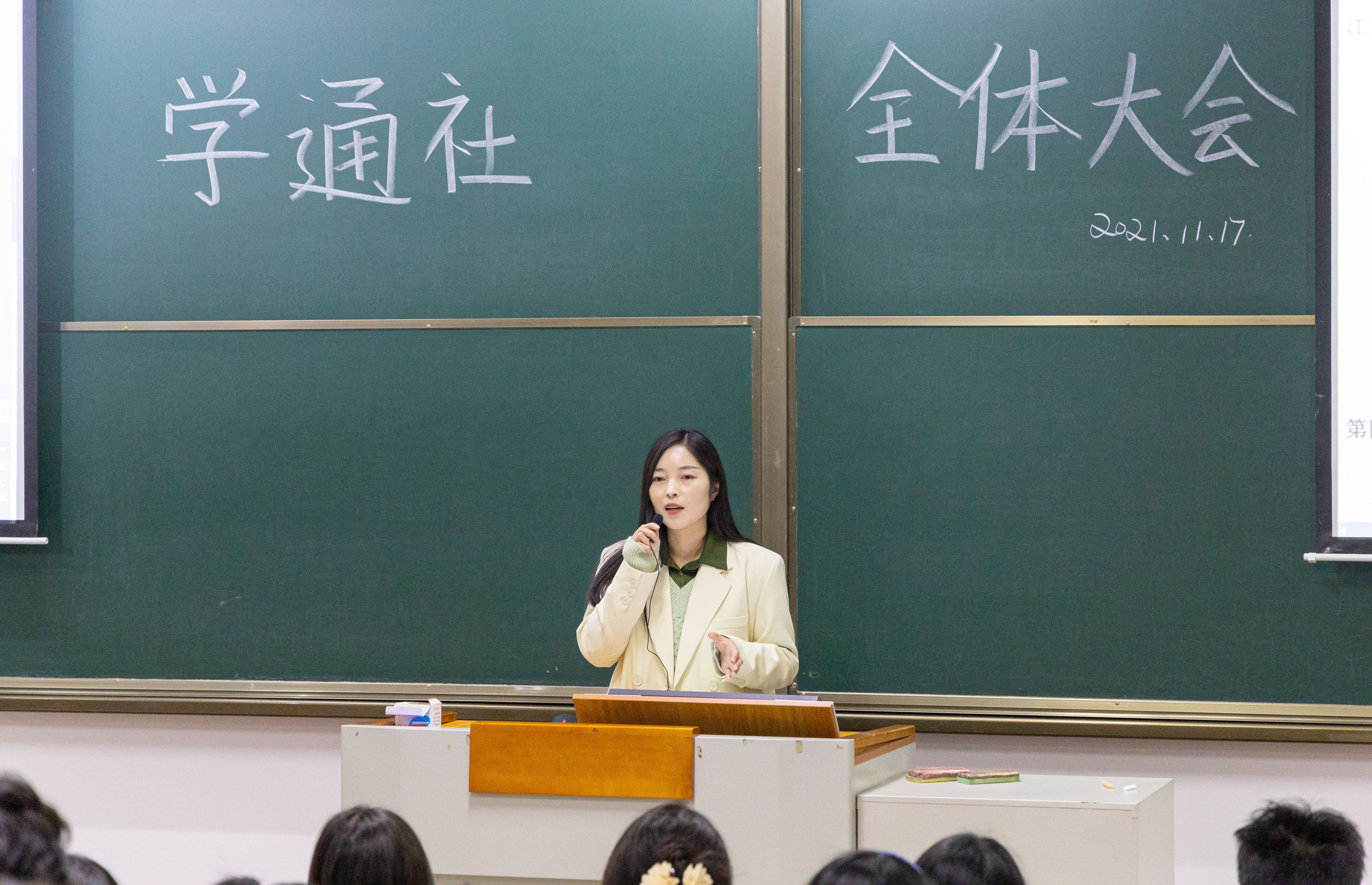 主席马轲发言,她对新成员的加入表示欢迎与祝贺,并希望全体新成员可以与学通社共同成长,都能在自己热爱的世界里闪闪发光。各分管主席相继发言,言语之中透露着真情实感,让大家真切感受到学通社大家庭的温暖。