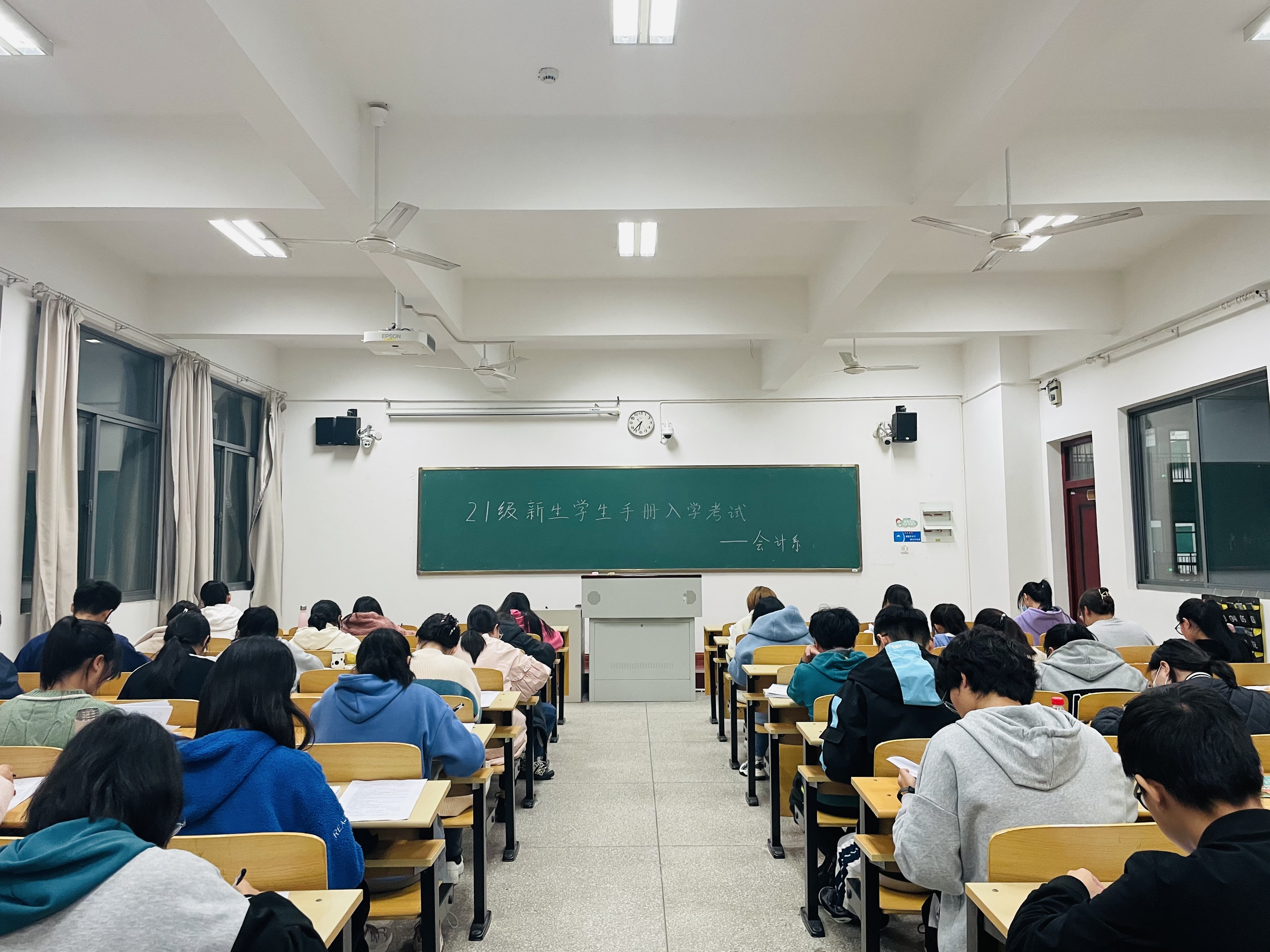 为引导学生增强遵守校纪校规的意识,提高自身修养,会计系于11月21日晚在A教学楼组织21级新生参加学生手册考试。此次考试由各班学生班主任监考,辅导员巡考。