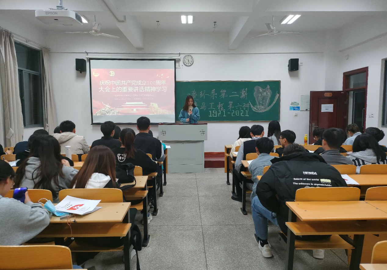 为深入学习贯彻习近平总书记为庆祝中国共产党成立100周年华诞发表的重要讲话精神,引导广大青年团员明理、增信、崇德、力行。11月22日晚,建环系团总支在A108举办青马培训班第六讲——学习庆祝中国共产党成立100周年大会上的重要讲话精神。会议由建环系团总支副书记毛凡主持,建环系学生会全体成员和各班优秀团员代表参会。